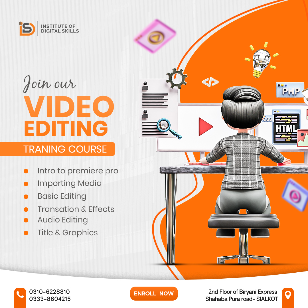 Unlock your creative potential with our Video Editing Course in Sialkot, designed for beginners, students, freelancers, and aspiring content creators who want to build real professional editing skills. This practical training program focuses on Adobe Premiere Pro, one of the world’s most powerful and widely used video editing software for YouTube videos, vlogs, ads, social media content, short films, and corporate projects.